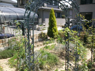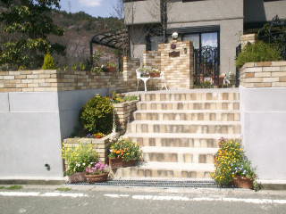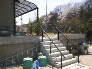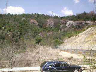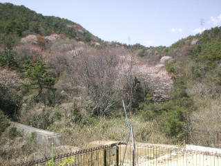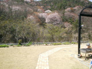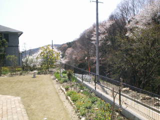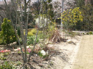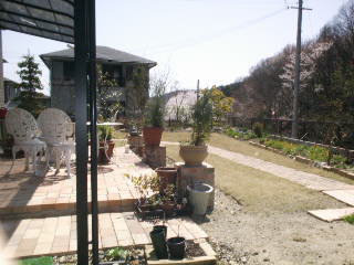 庭に春が来ました。裏山の桜も見事に咲いています。庭の芝生も徐々に青みがかってきています。 平成13年4月8日の庭です!