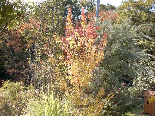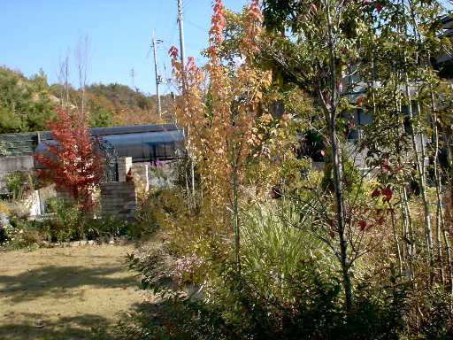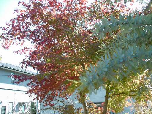 平成14年11月10日の晩秋の庭です。 紅葉がきれいになってきました。予告:11月末からのクリスマスイルミネーションを近く掲載予定